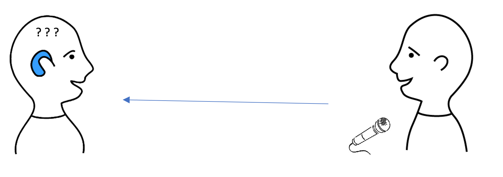 Silka 2: Pri komunikaciji na daljše razdalje ali prek zvočnikov je slušni aparat nemočen