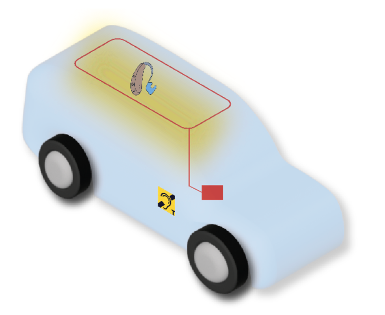 Slika 6: Tuljava v slušnem aparatu sprejema zvoke iz magnetnega polja
