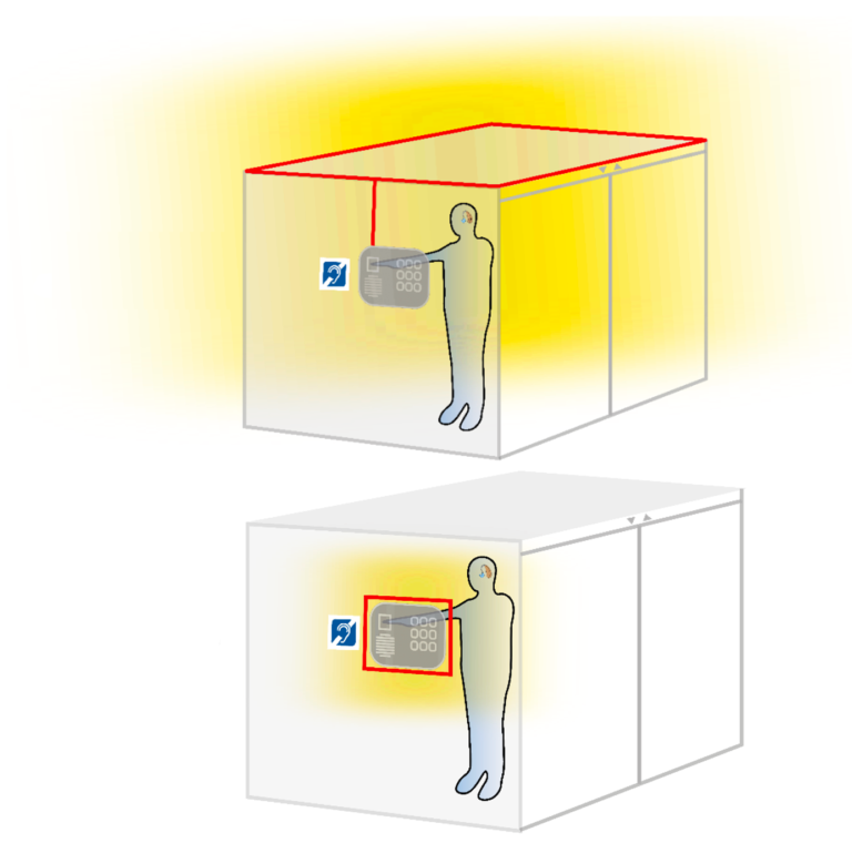 Slika 11: Dvojna (multi-loop) indukcijska zanka zagotavlja boljši pokrivanje prostora s signalom kot obodna zanka, primerna pa je za srednje do velike prostore brez kovinskih konstrukcij
