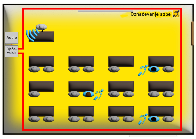 Sosednje učilnice – vsaka s svojo indukcijsko zanko. Brez uporabe tega sistema bi se signali iz obeh učilnic izničili ali motili drug drugega.